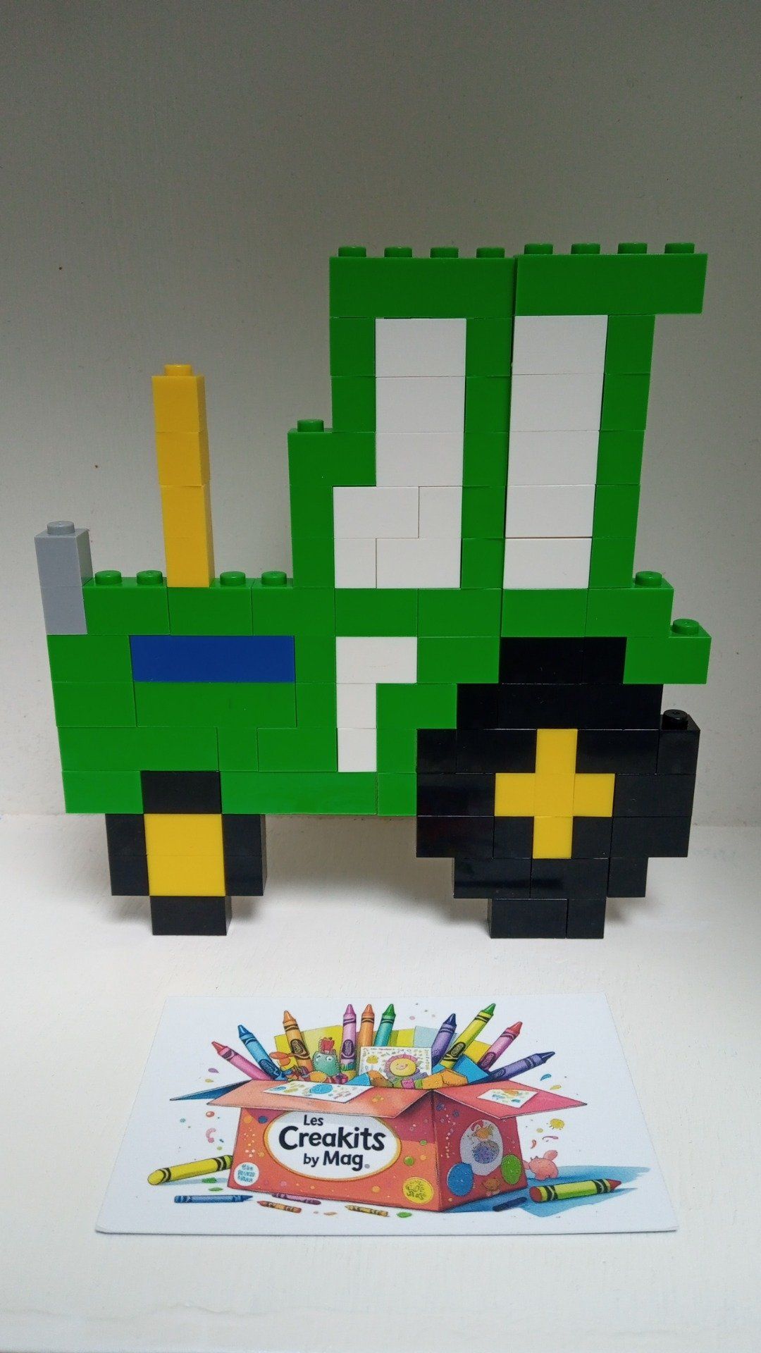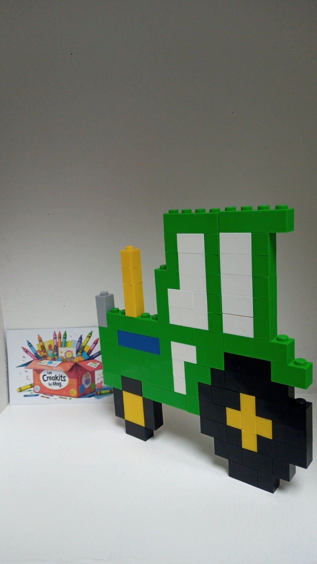 Réalisez un tracteur en figurine pixel art à base de briques.